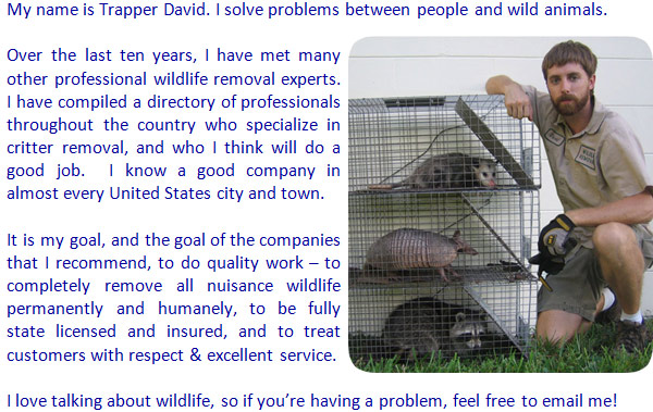 © 2003-2013     Website content & photos by Trapper David     Email questions: david@wildlife-removal.com